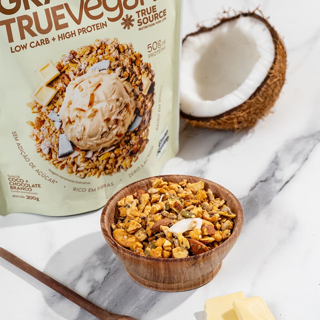 A Granola True Vegan Coco com Chocolate Branco é uma opção prática, saborosa e consciente, feita especialmente para quem cuida do corpo e do planeta.