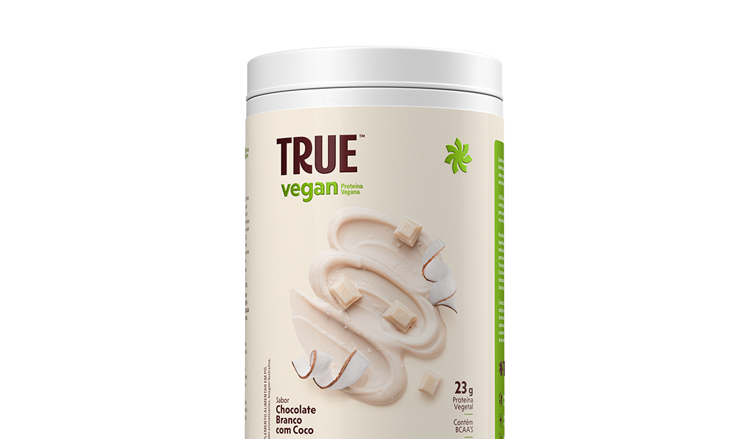 True Vegan sabor Chocolate Branco com Coco: