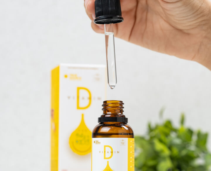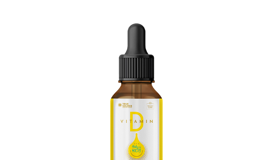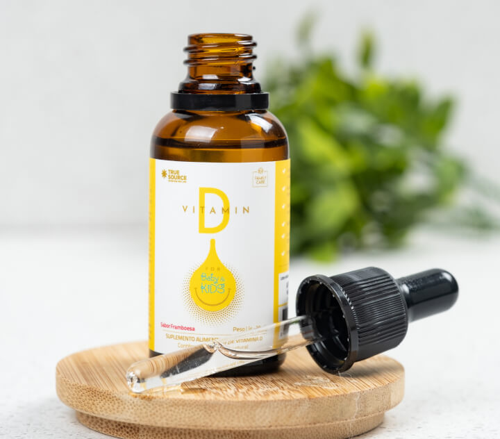 Nossa Vitamina D fornece 5mcg por gota com sabor natural.